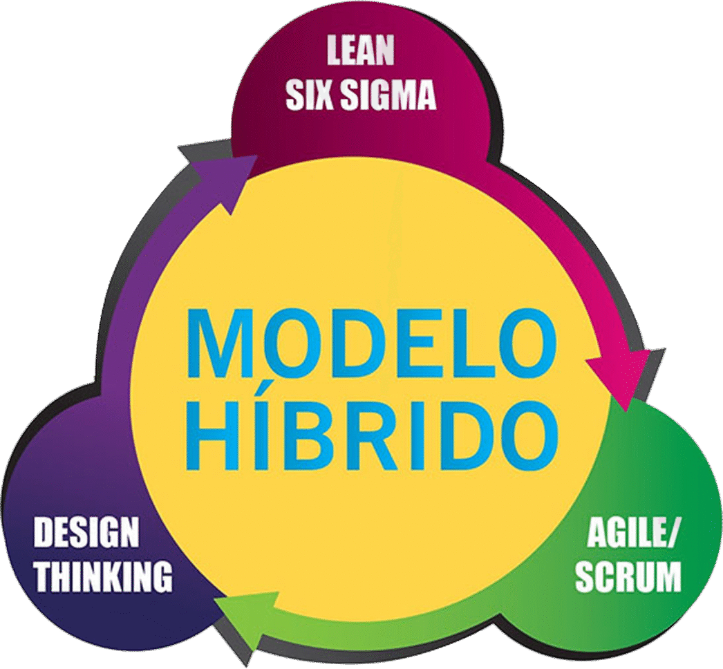 O Modelo Híbrido é uma abordagem inovadora que integra três metodologias consagradas: Lean Six Sigma, Design Thinking e Agile/Scrum. Essa combinação visa potencializar a eficiência operacional, fomentar a inovação e promover a agilidade nos processos organizacionais.